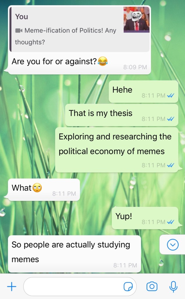 On the one hand, U.S. politicians have started embracing memes, so much so that it has become a joke and on the other hand there is a constant circulation of political memes, especially during elections. And this has consequences. Memes have the potential to sway public opinions around U.S. Politics.