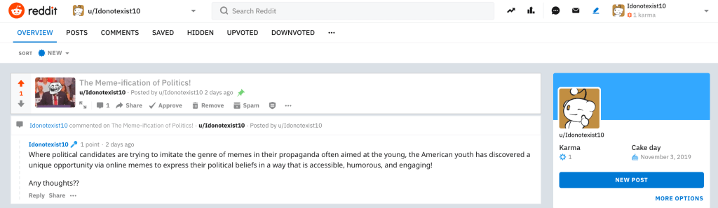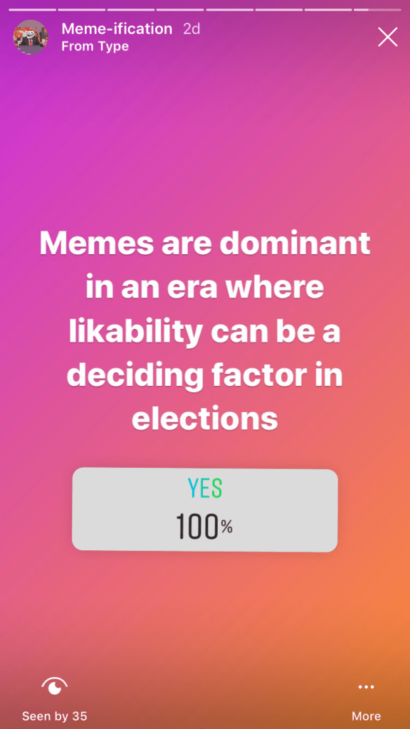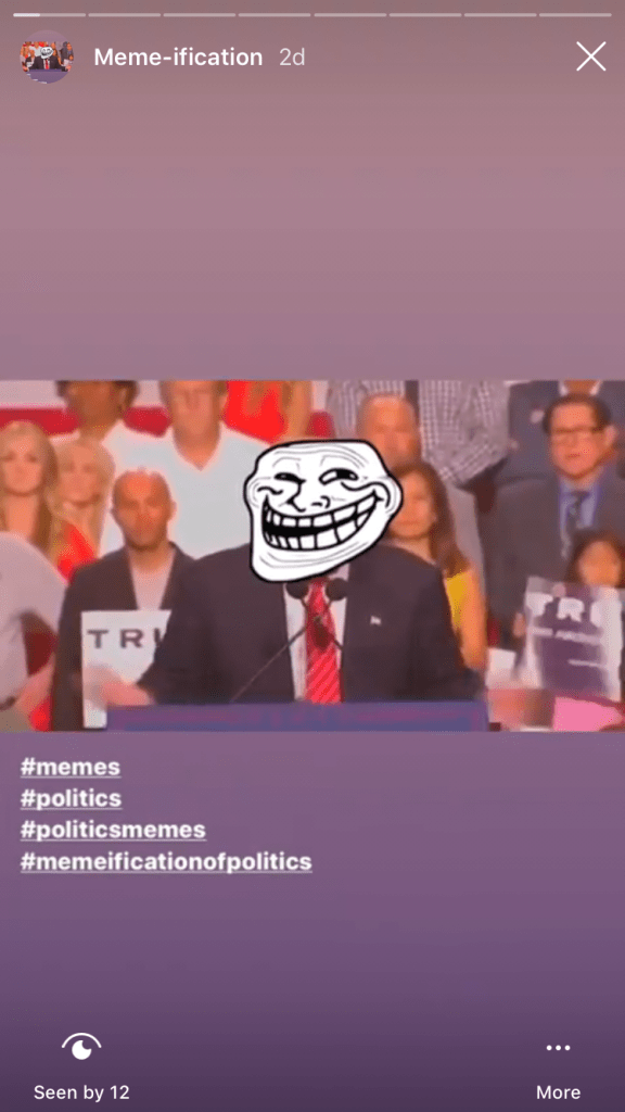 Politicians have started meme-ing be it via Instagram or Twitter. The execution of this project is a 3 step journey to the current scenario of the political economy of memes in the U.S.